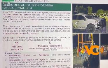 Informó que 10 minero están quedaron atrapados en una mina de carbón ubicada en Sabinas, en el estado de Coahuila, México.