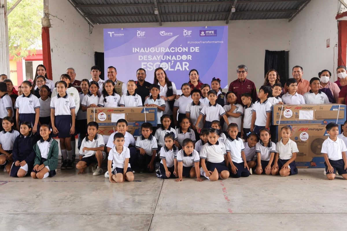 Ciudad Mante, Tamaulipas.– El Sistema para el Desarrollo Integral de la Familia de Tamaulipas, presidido por la doctora María de Villarreal, en coordinación con la Secretaría de Educación, continúa fortaleciendo el programa de Desayunos Escolares en beneficio de la niñez tamaulipeca, al inaugurar un desayunador escolar en la escuela primaria Emilio Carranza, ubicada en la Congregación Quintero, en el municipio de El Mante.
