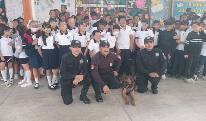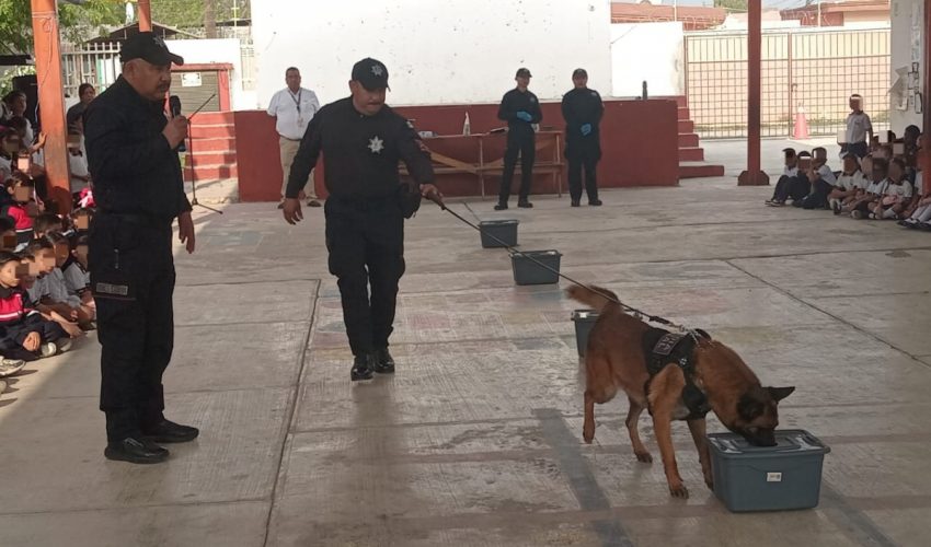 Niñas y niños vivieron una jornada de aprendizaje al recibir la visita de “Max”, un canino de la Guardia Estatal cuya misión es detectar narcóticos.