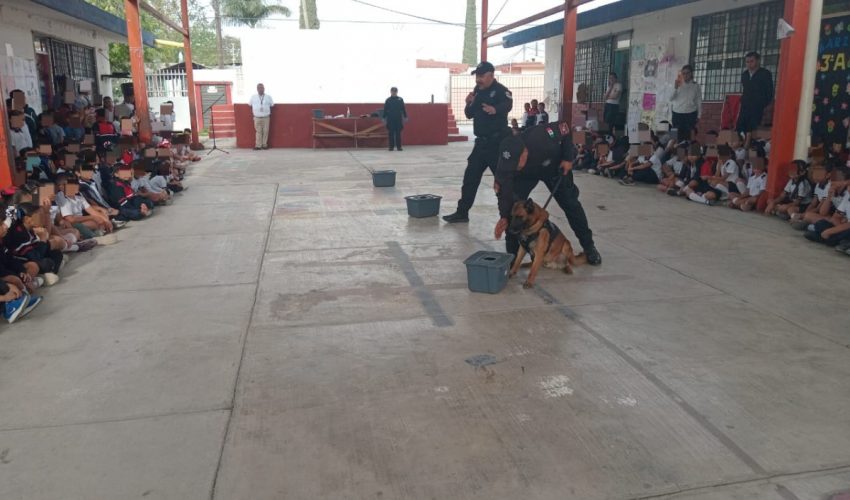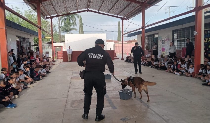 Acerca Guardia Estatal a “Max”, perro especializado, a comunidad escolar