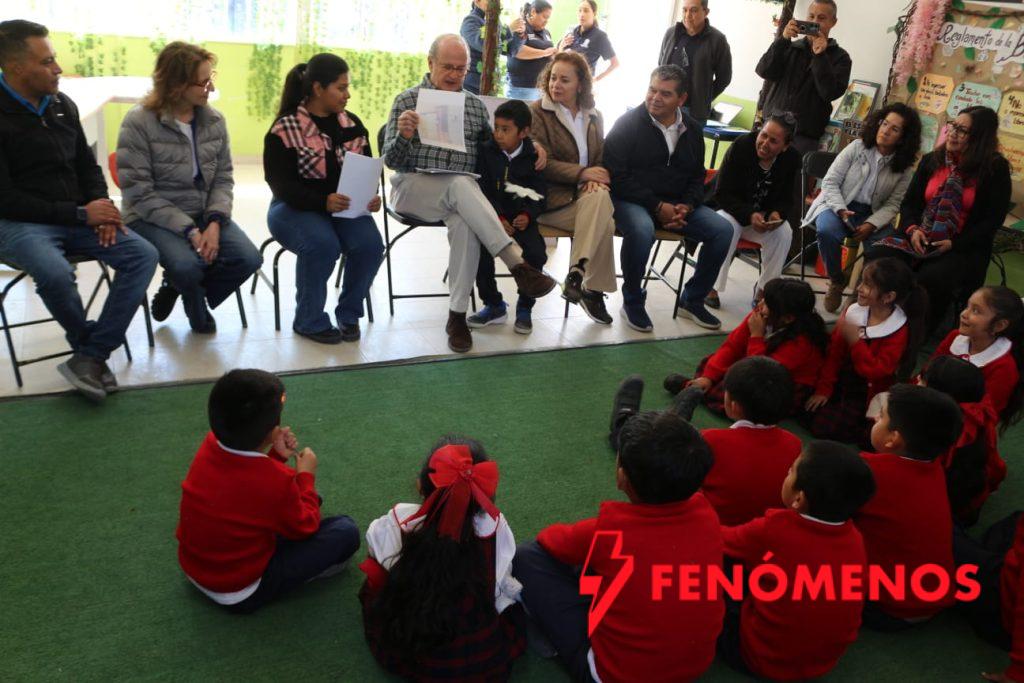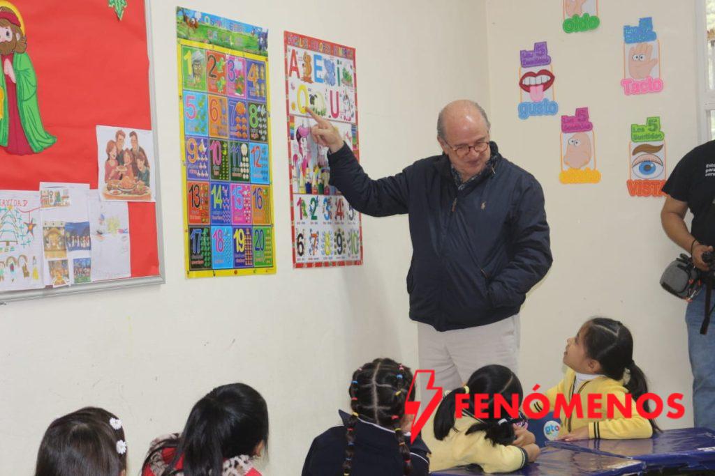 En compañía de Guadalupe Valenzuela Ríos, Subsecretaria de Educación básica, del Delegado Regional II, Héctor Teodoro Montes Estrada y del Presidente Municipal de Atarjea, José Luis Rivas Loyola, el titular de la SEG acudió primero al preescolar unitario Juan de la Barrera, de cabecera municipal, donde, con satisfacción se constató el desarrollo de habilidades pre-lectoras que son la base para aprender a leer a tiempo: conciencia fonológica, reconocimiento de letras y números, comprensión de narrativas y gusto por los libros, de las niñas y niños que reciben un excelente servicio educativo, con la guía de la comprometida maestra y directora encargada, Guillermina Sánchez Gutiérrez.
