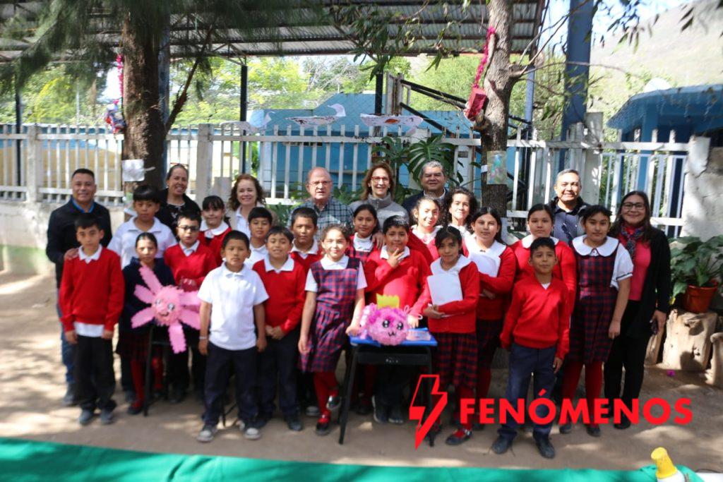 Más tarde, la comitiva avanzó hacia la primaria Niños Héroes, de la comunidad de Mangas Cuatas, para ser testigos del cierre del proyecto Acuaventuras, que se convirtió en una fiesta de conocimiento y sensibilidad ambiental donde niñas y niños compartieron lo aprendido sobre la importancia de cuidar el entorno y los derechos de los animales, destacando al ajolote como símbolo de biodiversidad y resiliencia por sus sorprendentes características, como su capacidad de regenerar extremidades y su papel vital en los ecosistemas acuáticos. Es de destacar que en esta escuela cuentan con una creativa biblioteca y se vive la lectura a flor de piel.