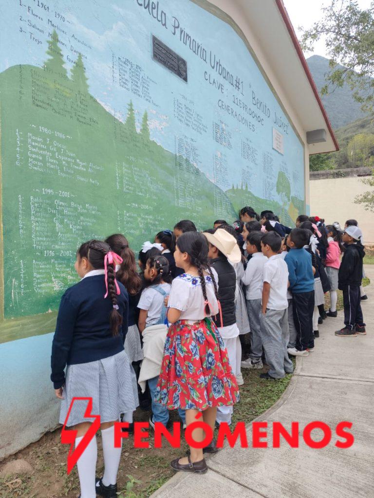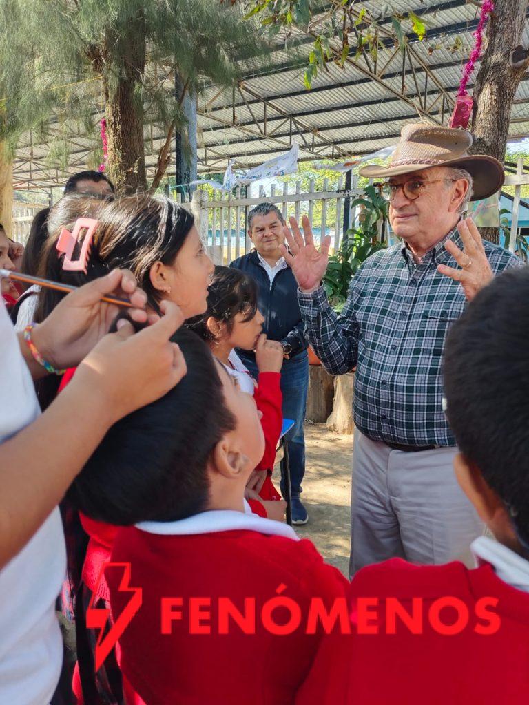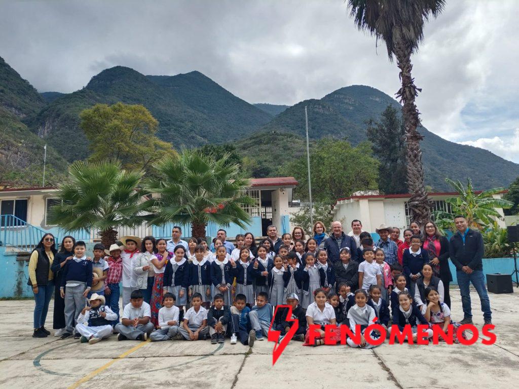 Posteriormente en la primaria Benito Juárez de cabecera municipal, se vivió un mágico momento con la cálida bienvenida de las y los estudiantes, quienes con entusiasmo y orgullo honran sus tradiciones, como la elaboración de máscaras de robenos y el huapango, un símbolo de identidad y talento que une generaciones y fortalece el sentido de pertenencia a su tierra rica en cultura.