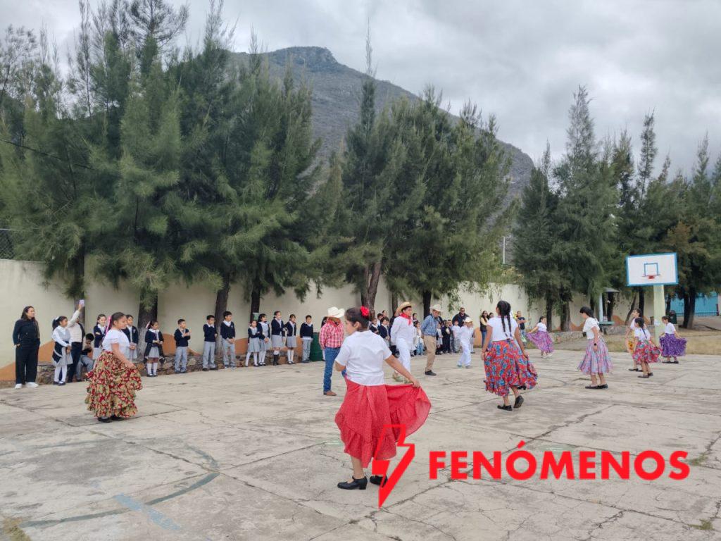Durante la visita, las y los estudiantes bailaron al son de la canción Así es mi Tierra, compuesta por Jesús Salinas, ex alumno y padre de familia de la primaria.