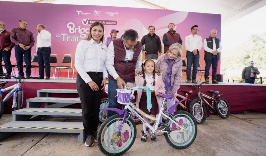 En un segundo momento, realizado en la plaza principal, se otorgaron 112 bicicletas a alumnas y alumnos de educación básica para brindarles un traslado más seguro hacia sus escuelas. Esta entrega fue acompañada por representantes de los tres órdenes de gobierno, quienes respaldaron las acciones de bienestar impulsadas a través de las brigadas Transformando Familias.