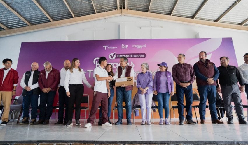Como parte de esta jornada, también se entregaron computadoras portátiles, tabletas electrónicas, láminas, estufas ecológicas, equipamiento para desayunadores escolares, tinacos, máquinas de coser y distintos kits para oficios como belleza, vulcanizadora, barbería, repostería, corte de cabello y mantenimiento del hogar.