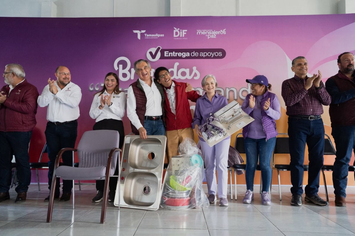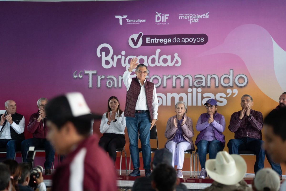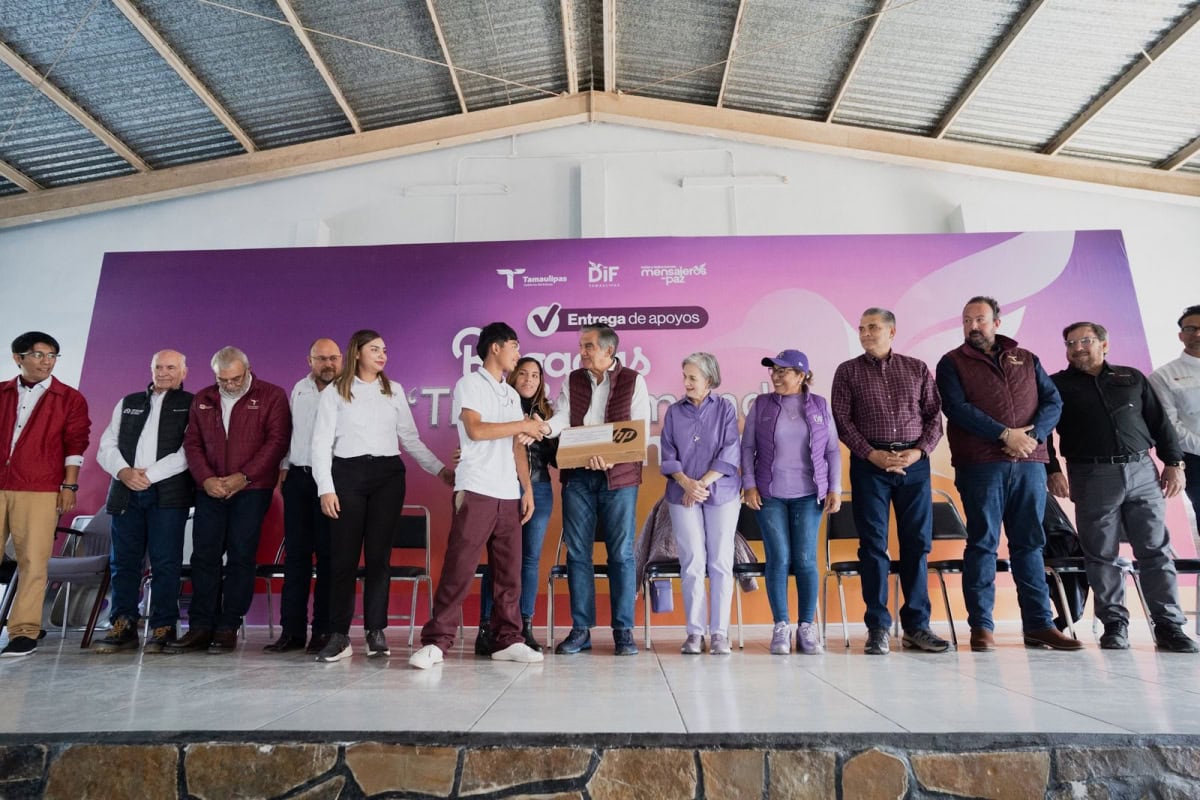 San Nicolás, Tamaulipas. En una visita de trabajo a este municipio, el gobernador Américo Villarreal Anaya y la presidenta del Sistema DIF Tamaulipas, la doctora María de Villarreal, reafirmaron su compromiso con las familias de San Nicolás mediante la entrega de diversos apoyos solicitados previamente en la brigada “Transformando Familias”, entre los que destacan aparatos funcionales, enseres domésticos, herramientas de trabajo y equipamiento para el hogar y el emprendimiento.