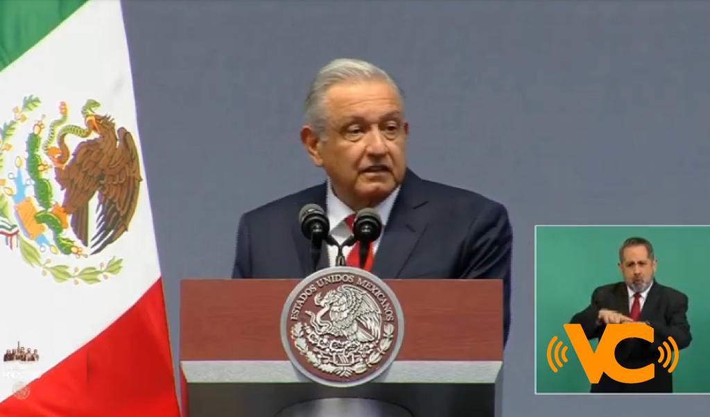 Durante su discurso, sostuvo que las y los mexicanos están de pie a pesar de la pandemia y pese a que, subrayó, se precipitó la crisis económica originada por el neoliberalismo.