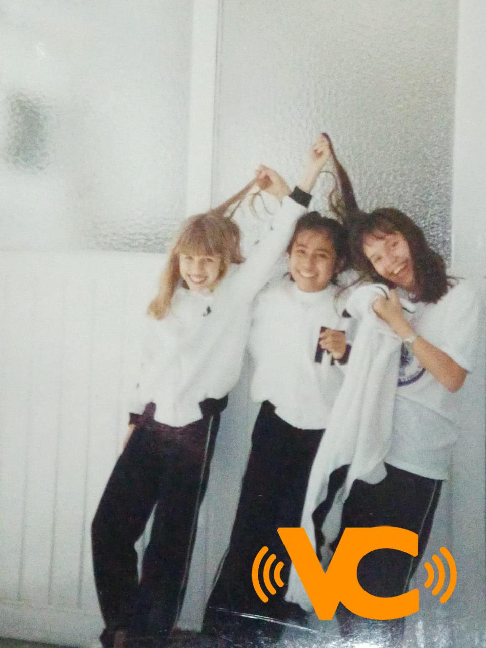 En ese orden de ideas, recordó a sus entonces dos compañeras del primer grado en la Escuela Secundaria «La Morelos», a quienes se refirió con los nombres de Karla y Sonia. Para ilustrar su narración acompañó una fotografía donde posan las entonces tres adolescentes.
