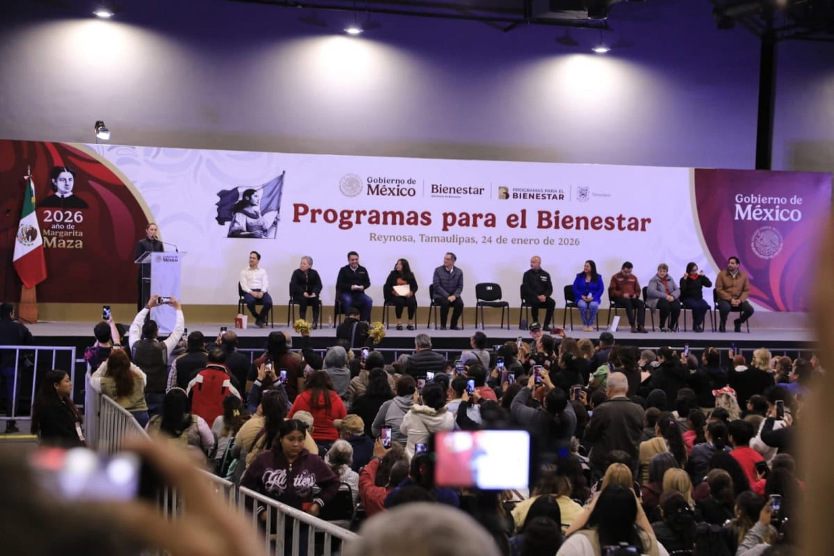 Reynosa, Tamaulipas.- La presidenta de México, Claudia Sheinbaum Pardo refrendó todo el respaldo del Gobierno Federal a Tamaulipas, al anunciar una amplia serie de apoyos en vivienda, carreteras, salud, obras de infraestructura hidráulica y más de 23,000 millones de pesos en inversión de los programas federales que beneficiarán a 816,000 tamaulipecos y tamaulipecas.