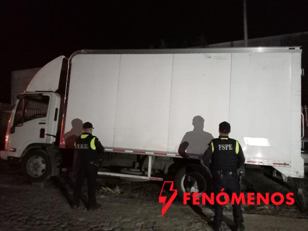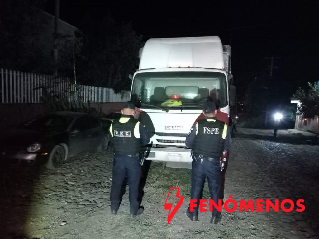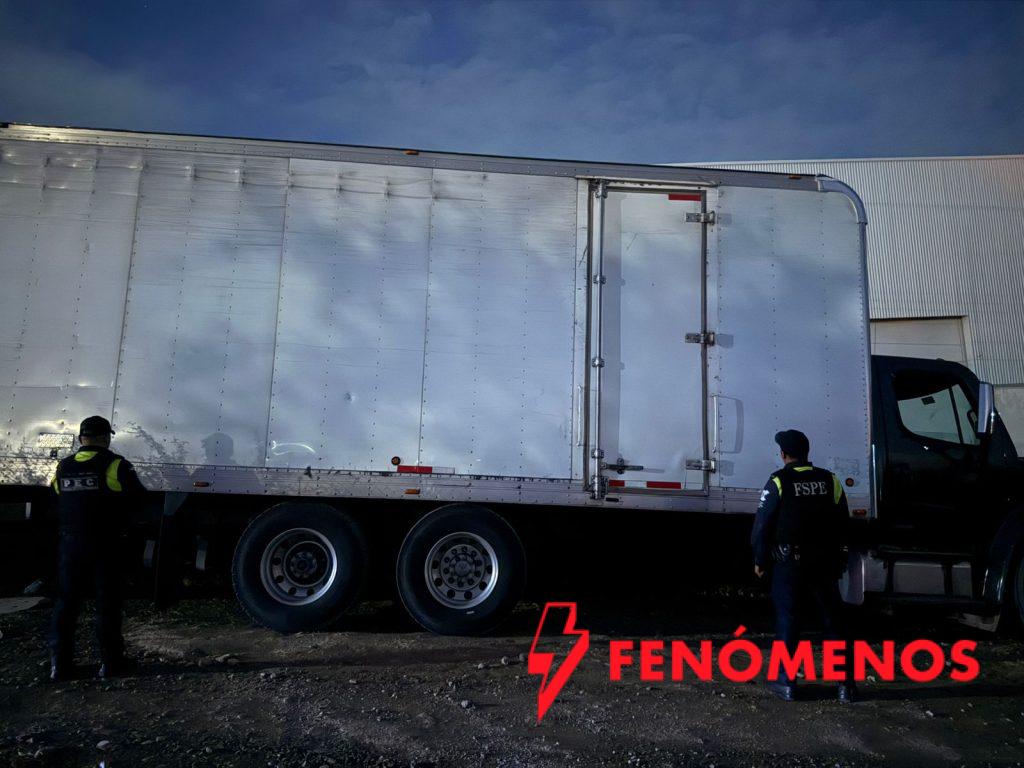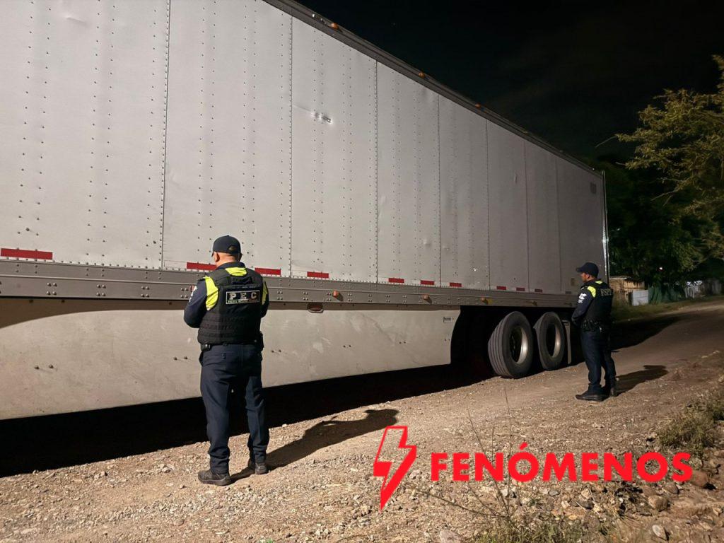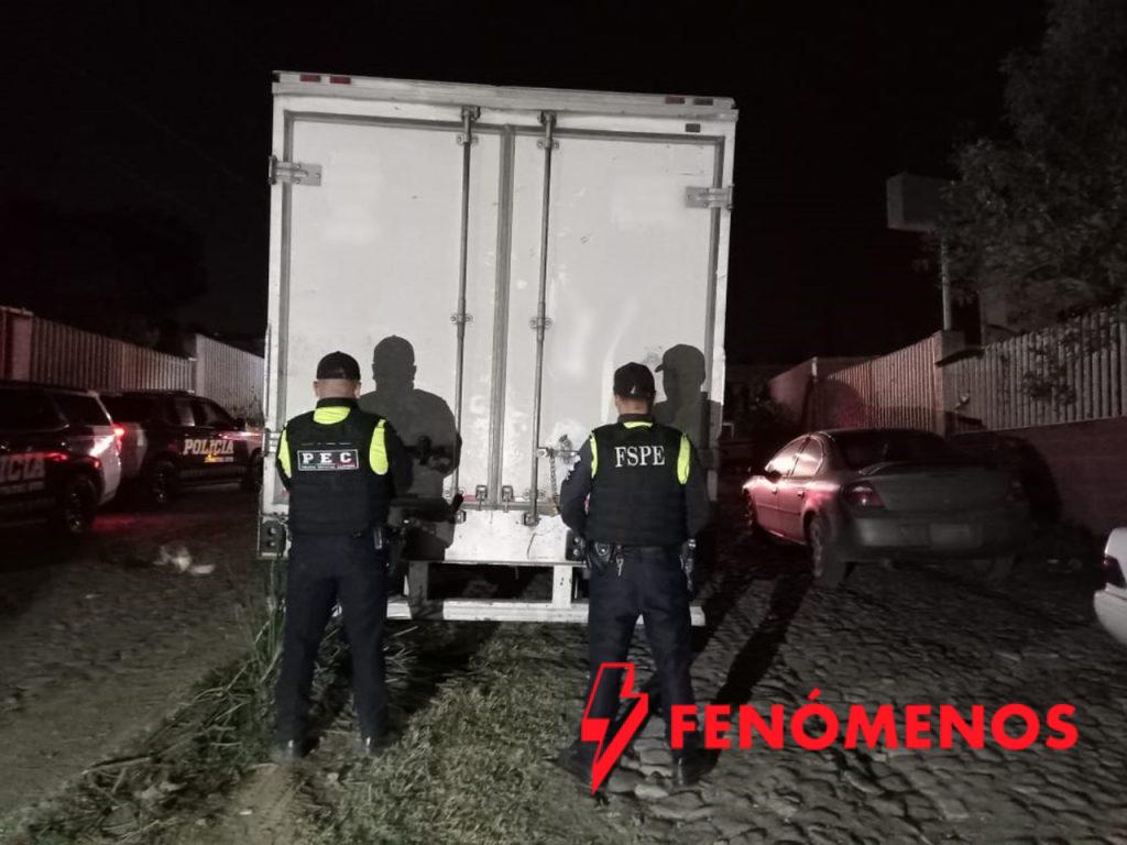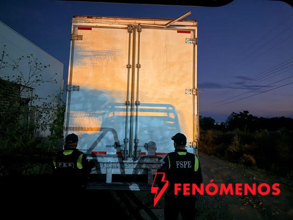La dependencia detalló que, durante un recorrido de vigilancia, el personal de la PEC detectó un tractocamión color blanco estacionado con las puertas abiertas. Tras verificar el número de serie con el Sistema Estatal C5i, se confirmó que contaba con reporte de robo vigente. El vehículo estaba acoplado a una caja seca que contenía ocho embalajes de cobertizos para jardín.