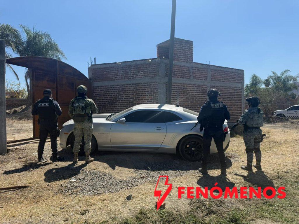 En el sitio se aseguró un vehículo tipo sedán, Ford Camaro, color gris, sin placas de circulación, un arma larga hechiza calibre .22 y una garrafa con aproximadamente 20 litros de gasolina.