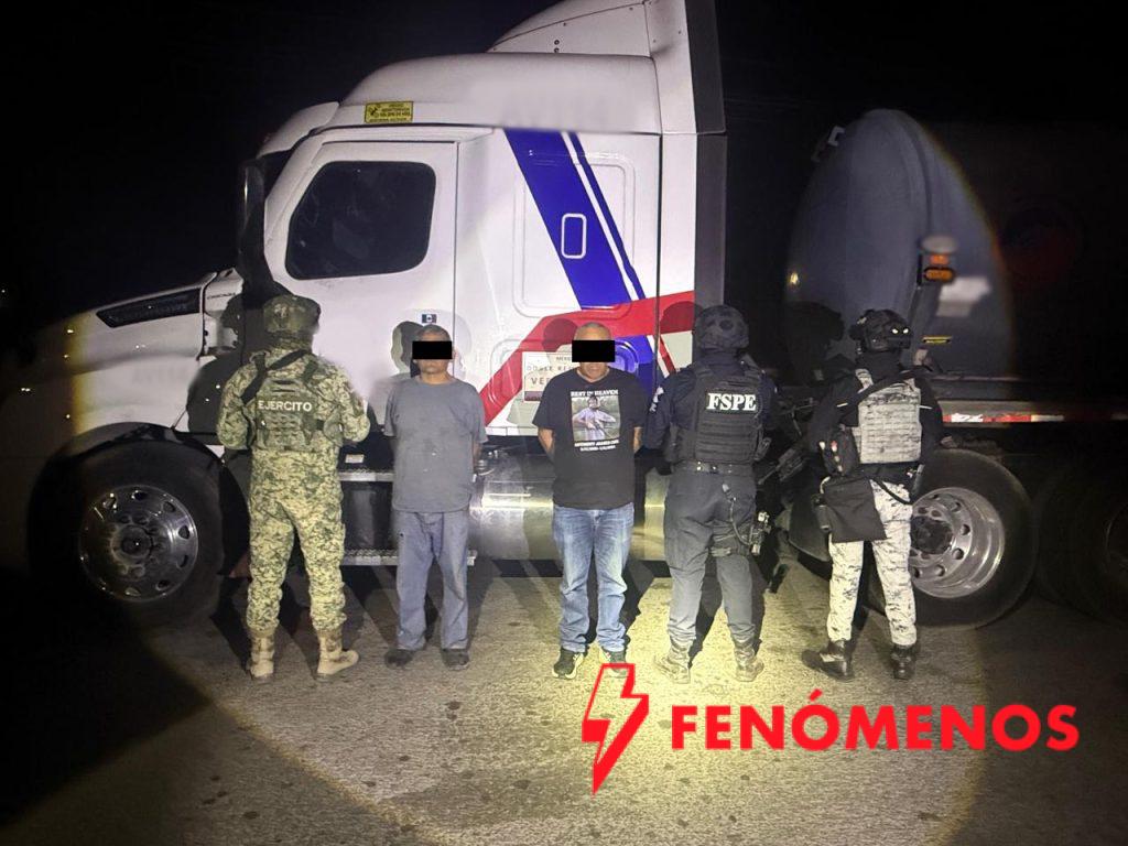 En el segundo hecho, integrantes de las FSPE, Región IV, aseguraron un tractocamión que transportaba aproximadamente 63 mil litros de diésel sin documentación que acreditara su procedencia legal.
