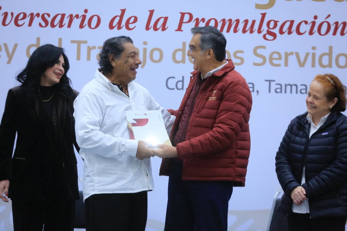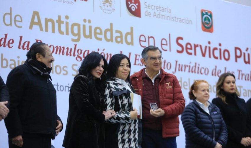 En esta ceremonia, recibieron de manera especial su reconocimiento por 50 años de servicio: Gerardo Salinas Trejo, de la Secretaría de Finanzas, y David González Delgado, de la Secretaría de Administración, mientras que Gerarda Pelcastre, de la Secretaría de Administración, fue galardonada por cumplir 55 años de servicio en el Gobierno de Tamaulipas.