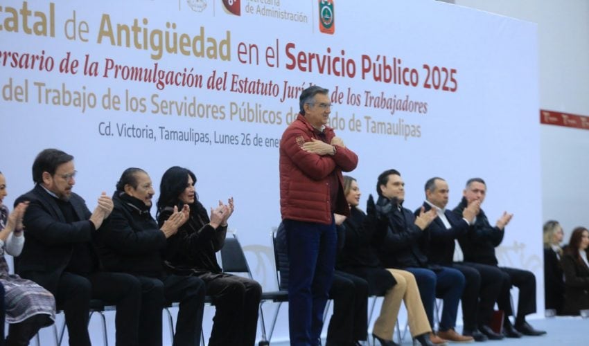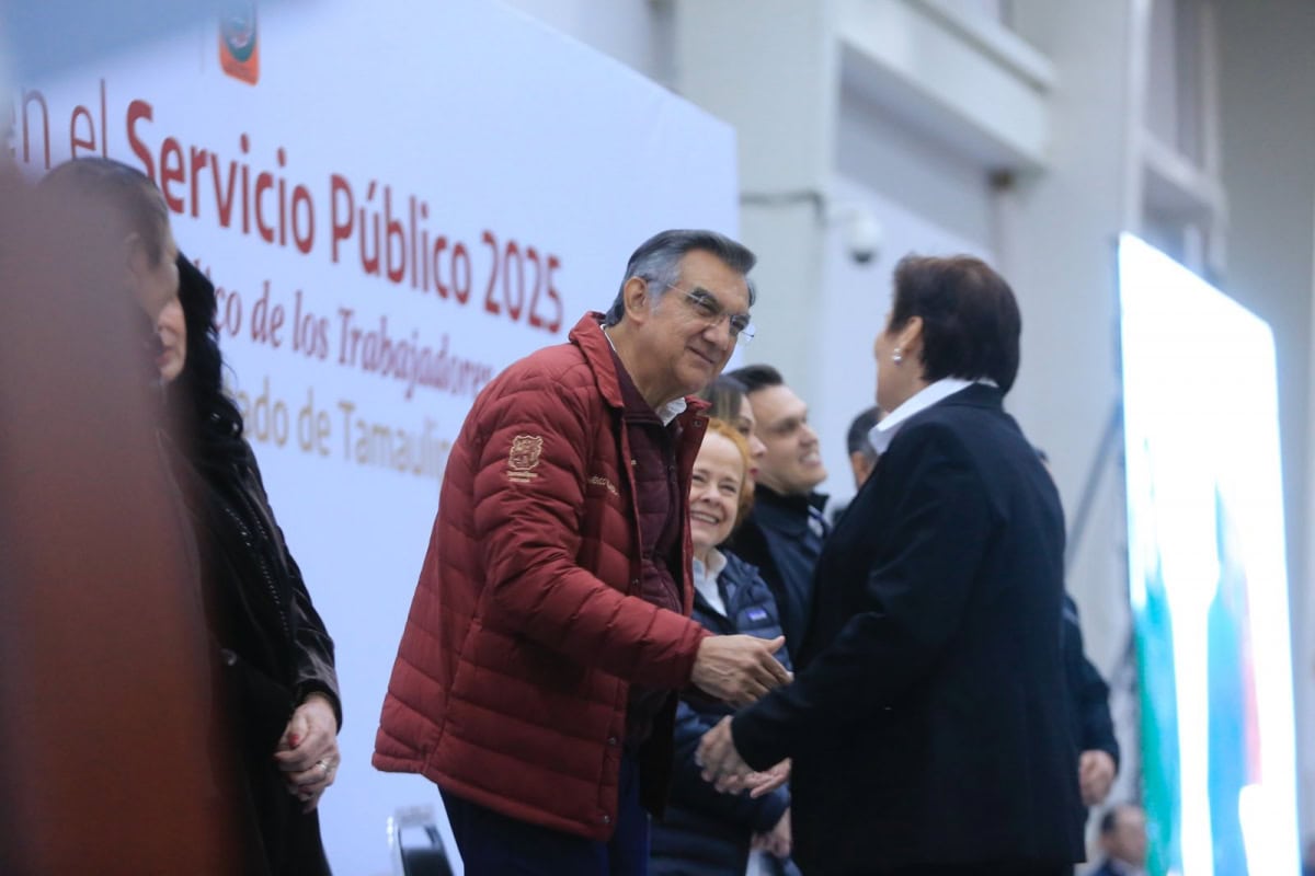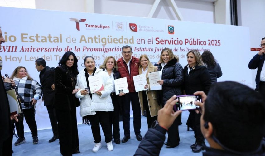 Durante la ceremonia en el Polyforum de esta capital, en la que se entregaron de manera simbólica 23 reconocimientos, medallas y estímulos económicos de un total de 1,453 a trabajadores que han cumplido entre 20 y 55 años de servicio en el Gobierno de Tamaulipas, el jefe del Ejecutivo estatal se refirió a la visita que realizó la presidenta Claudia Sheinbaum, quien trajo grandes beneficios y oportunidades para el desarrollo del estado y para seguir logrando el bienestar y la justicia social, así como coadyuvar al crecimiento y desarrollo de nuestra nación.