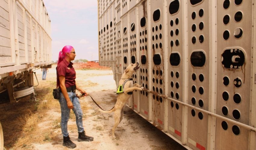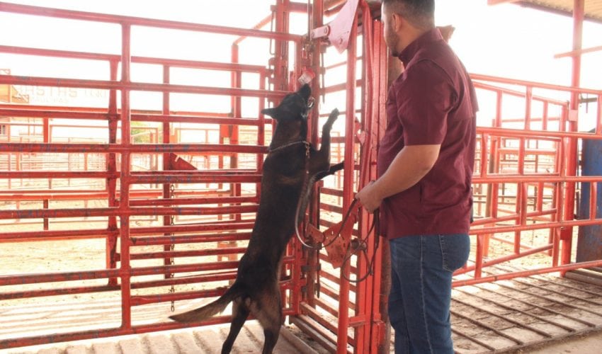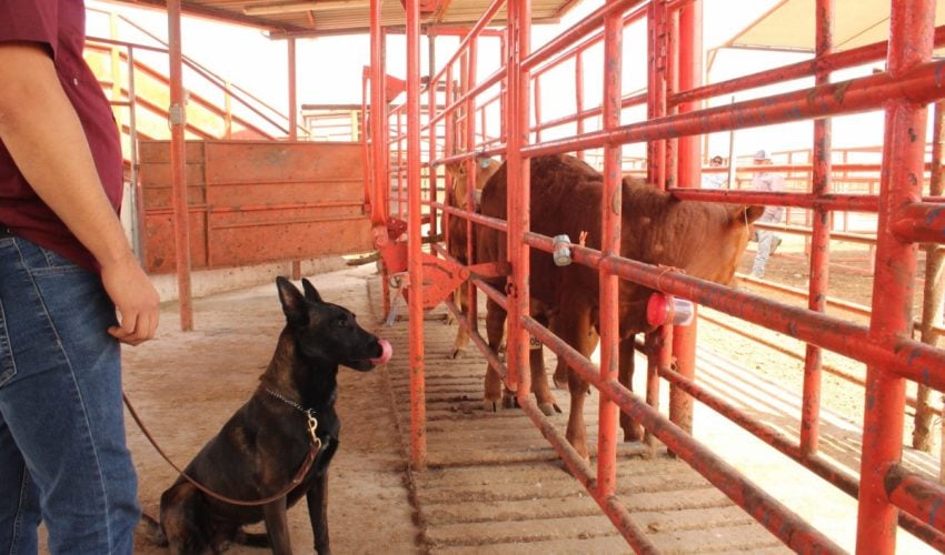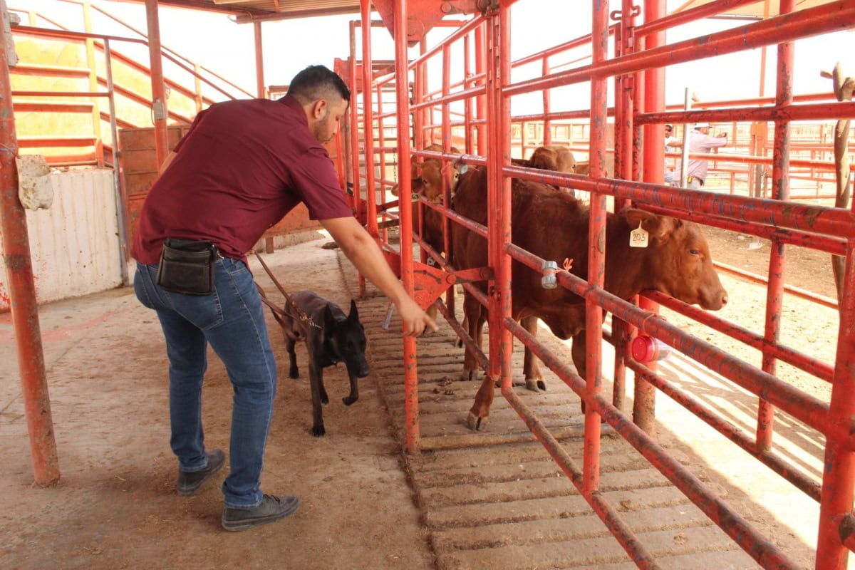 Ciudad Victoria, Tamaulipas.– Con el firme compromiso de reforzar la sanidad en el sector pecuario, el Gobierno del Estado, a través de la Secretaría de Desarrollo Rural, Pesca y Acuacultura, avanza en la implementación de acciones preventivas para la detección oportuna del gusano barrenador del ganado (GBG), mediante el uso de binomios caninos especializados.