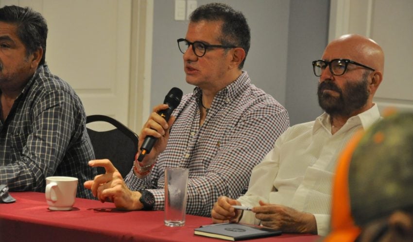 Reynosa, Tamaulipas.– Con el propósito de fortalecer la eficiencia en el uso del agua y consolidar la infraestructura hidroagrícola en la frontera norte del estado, el secretario de Recursos Hidráulicos para el Desarrollo Social, Raúl Quiroga Álvarez, presidió una reunión de trabajo con presidentes y gerentes de las Asociaciones Civiles de Usuarios del Distrito de Riego 026 Bajo Río San Juan, acompañado por el especialista en Tecnologías para la Sustentabilidad, Francisco Valdés Simancas.