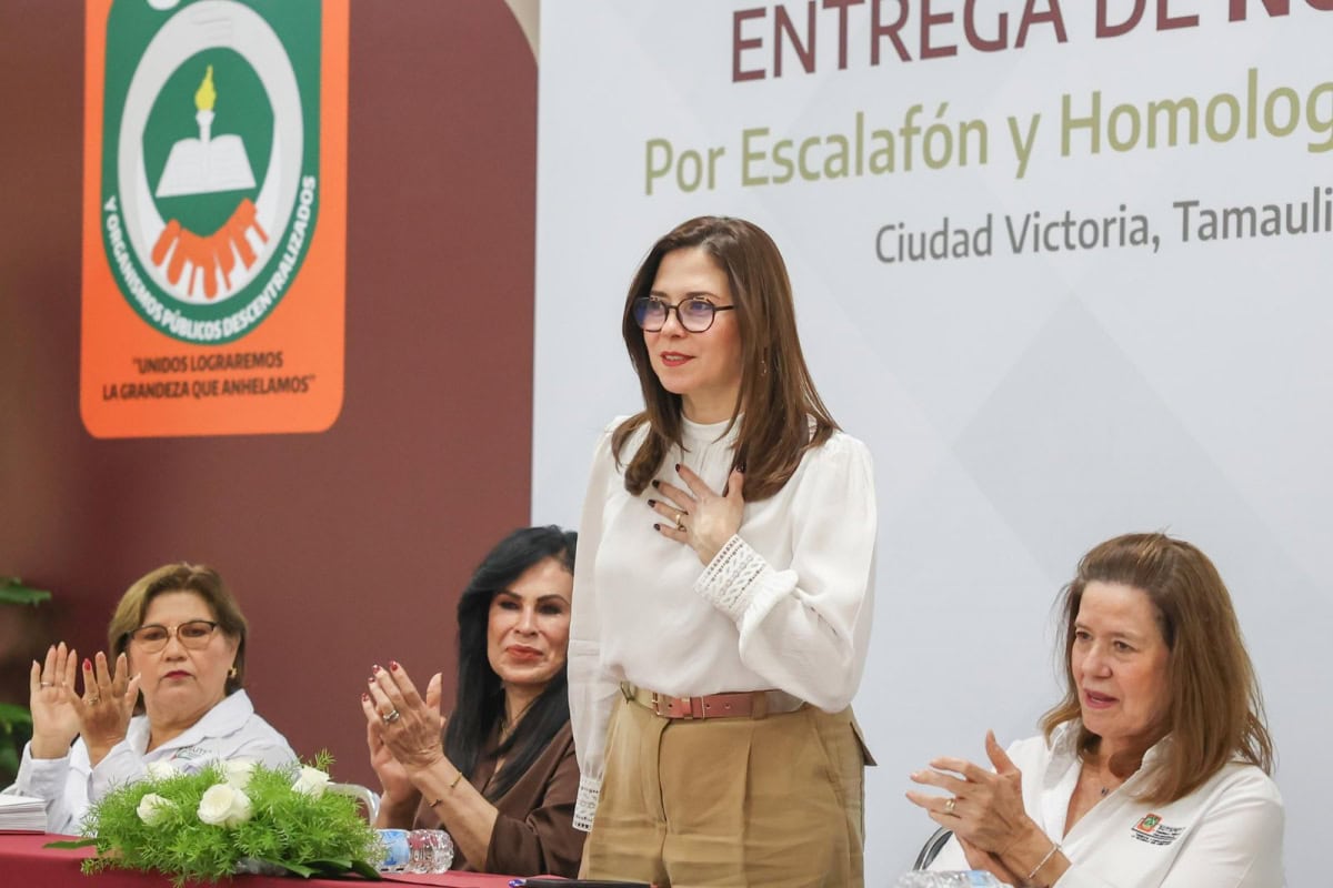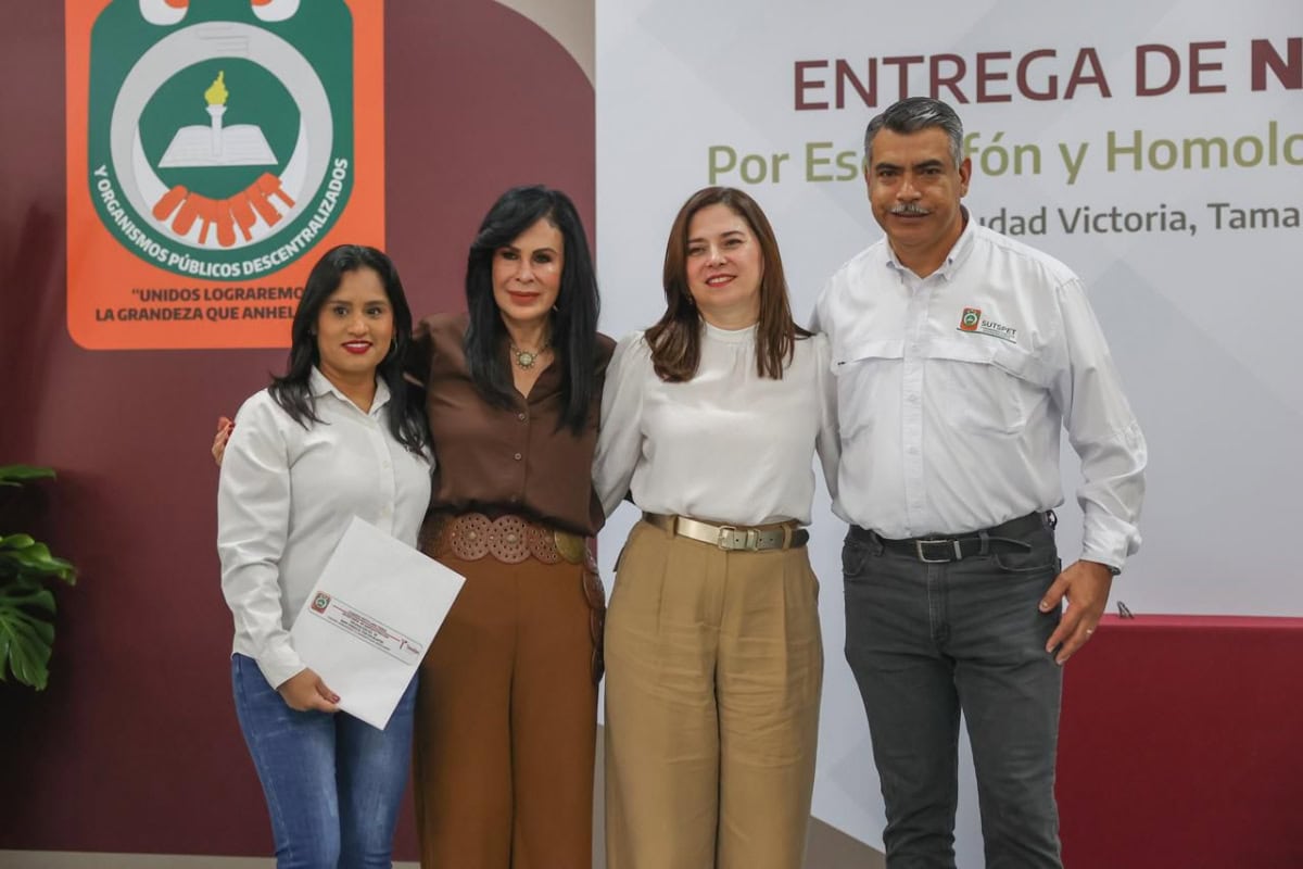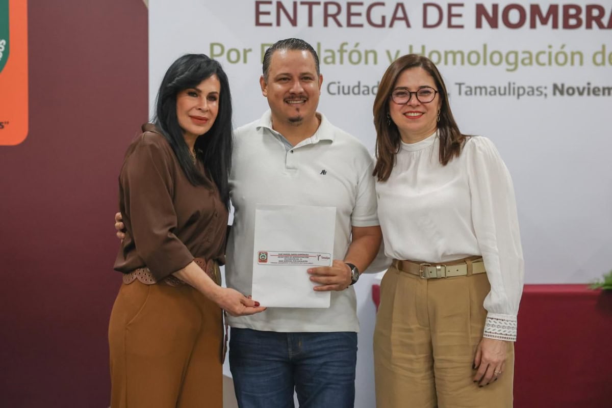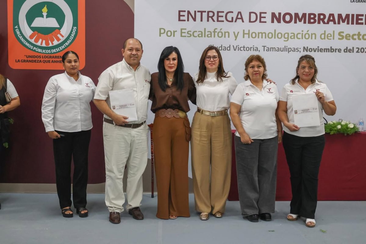 Ciudad Victoria, Tamaulipas.- Con la finalidad de reconocer la trayectoria y el esfuerzo del personal del Gobierno del Estado, se entregaron 108 nombramientos a las y los servidores públicos que accedieron a una categoría sindical durante el presente año, mediante movimiento escalafonario o por asignación preferente de plaza a hijos o cónyuges de trabajadores de base sindical. Cabe señalar que estas no son plazas de nueva creación, sino un reconocimiento a la trayectoria de los trabajadores.