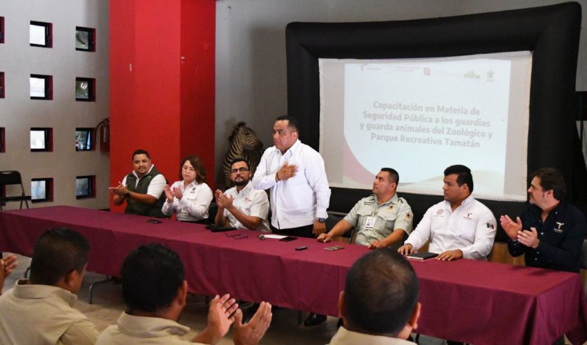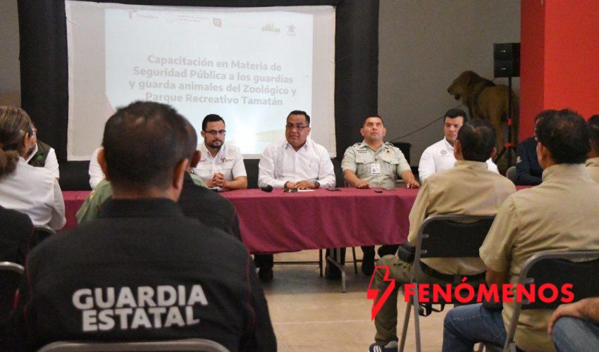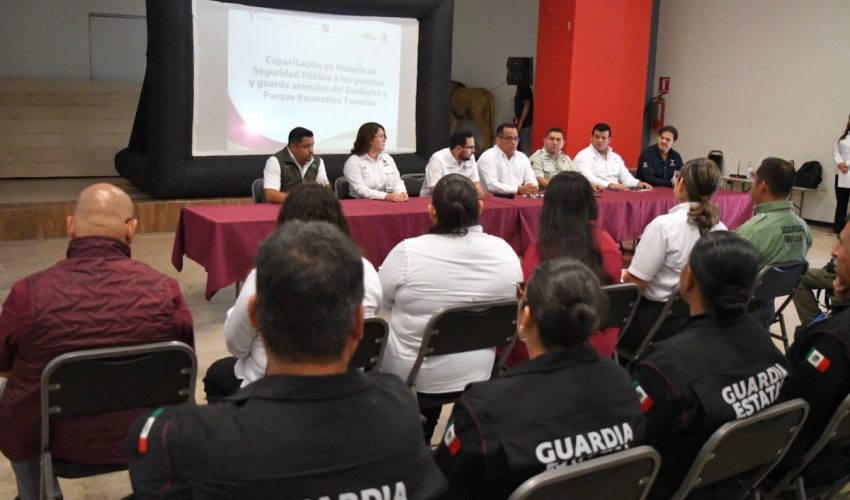 Ciudad Victoria, Tamaulipas.- Con el propósito de fortalecer las capacidades del personal de seguridad y operativo del Zoológico y Parque Recreativo Tamatán, la Secretaría de Seguridad Pública de Tamaulipas (SSPT) facilitó la impartición de una capacitación especializada en protocolos de actuación, manejo de multitudes y primeros auxilios.