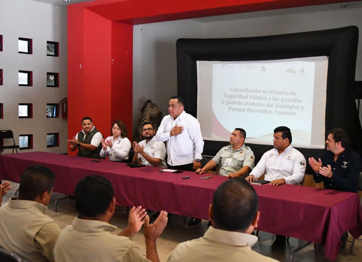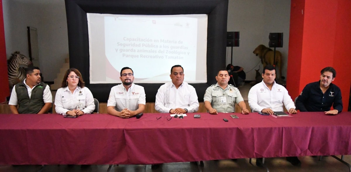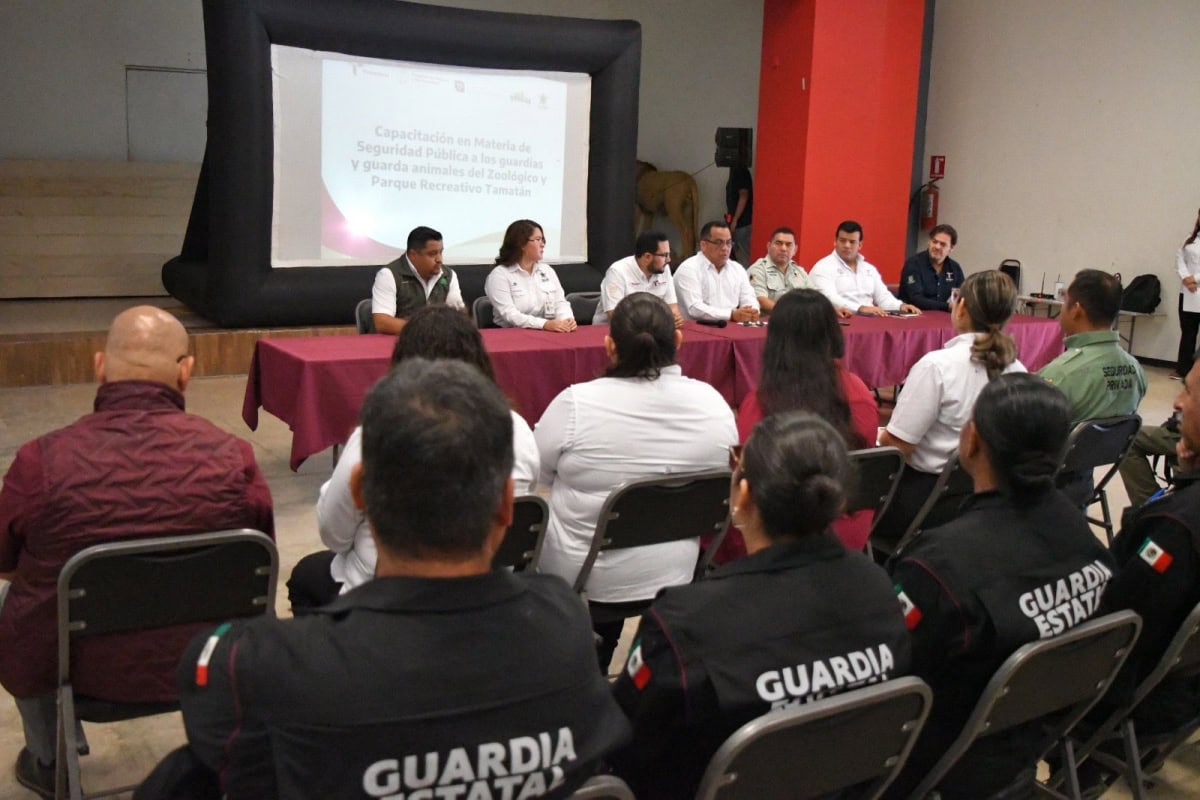 Ciudad Victoria, Tamaulipas.- Con el propósito de fortalecer las capacidades del personal de seguridad y operativo del Zoológico y Parque Recreativo Tamatán, la Secretaría de Seguridad Pública de Tamaulipas (SSPT) facilitó la impartición de una capacitación especializada en protocolos de actuación, manejo de multitudes y primeros auxilios.