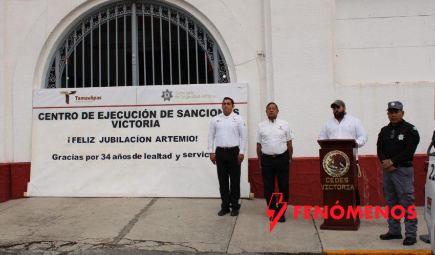 Ciudad Victoria, Tamaulipas.- El Centro de Ejecución de Sanciones (CEDES) Victoria llevó a cabo una ceremonia de reconocimiento para el custodio Artemio Rivera Cadengo, quien concluyó su servicio activo tras 34 años de labor ininterrumpida dentro de la Secretaría de Seguridad Pública de Tamaulipas (SSPT).