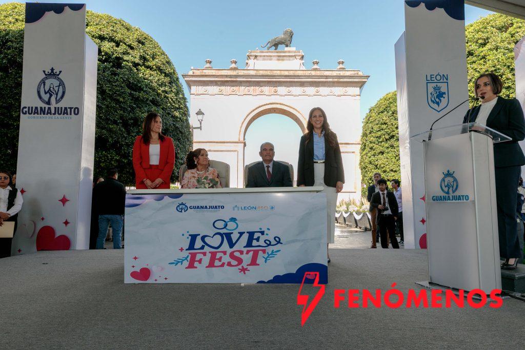 En el Estado la campaña Love Fest contempla a 150 matrimonios de León, 60 de Silao, 60 de Irapuato, 50 de Guanajuato y 50 de Pénjamo; y refrenda el compromiso del Gobierno de la Gente con la seguridad jurídica, la inclusión social y el fortalecimiento de las familias, como pilares para la construcción de comunidades más sólidas, con mayor bienestar y mejores oportunidades para todas y todos.