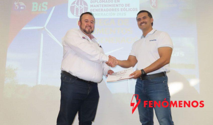 Ciudad Victoria, Tamaulipas.– La Universidad Politécnica de Victoria (UPV) celebró la séptima edición del Diplomado en Mantenimiento de Generadores Eólicos, con el egreso de 27 nuevos especialistas, profesionales que están listos y capacitados para integrarse al mercado laboral de la energía limpia y sustentable, expresó su rector, Luis Felipe Castillo Cortés.