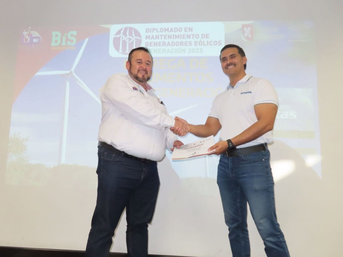Señaló que estas capacidades son esenciales para las tareas que se requieren en las instalaciones productoras de energía limpia en Tamaulipas y en todo el país. Consideró un gran honor la confianza brindada por la empresa Vestas y por los ahora graduados, quienes cursaron las 120 horas del diplomado.