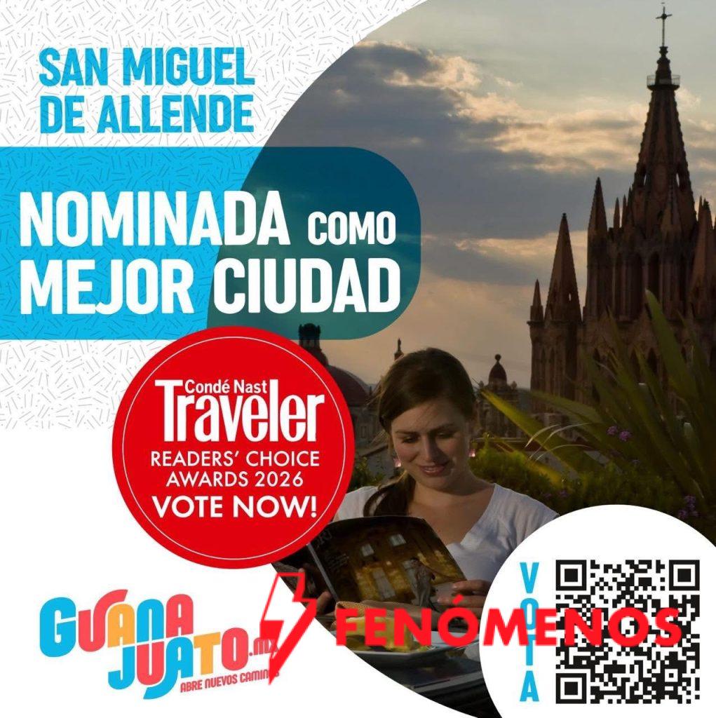 Guanajuato, Guanajuato a 11 de abril de 2026.– El estado de Guanajuato continúa consolidándose como uno de los destinos turísticos más importantes de México y del mundo, al destacar con sus dos Ciudades Patrimonio: Guanajuato Capital y San Miguel de Allende, nominadas en los prestigiosos Condé Nast Traveler Readers’ Choice Awards 2026 en la categoría de mejor ciudad.