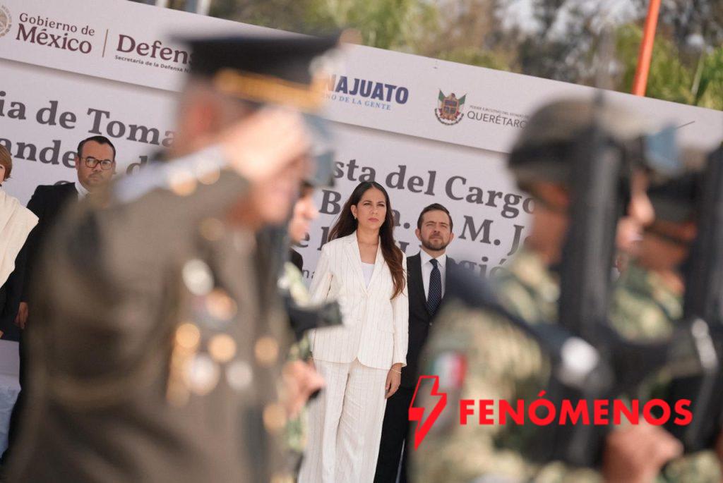 Posteriormente la Gobernadora de la Gente, Libia Dennise García Muñoz Ledo, asistió a la ceremonia de Toma de Protesta al Cargo, Posesión del Mando y Protesta de Bandera por parte del General de División Diplomado de Estado Mayor (DEM), Jorge Pedro Nieto Sánchez, Comandante Interino de la XII Región Militar, con sede en Irapuato.