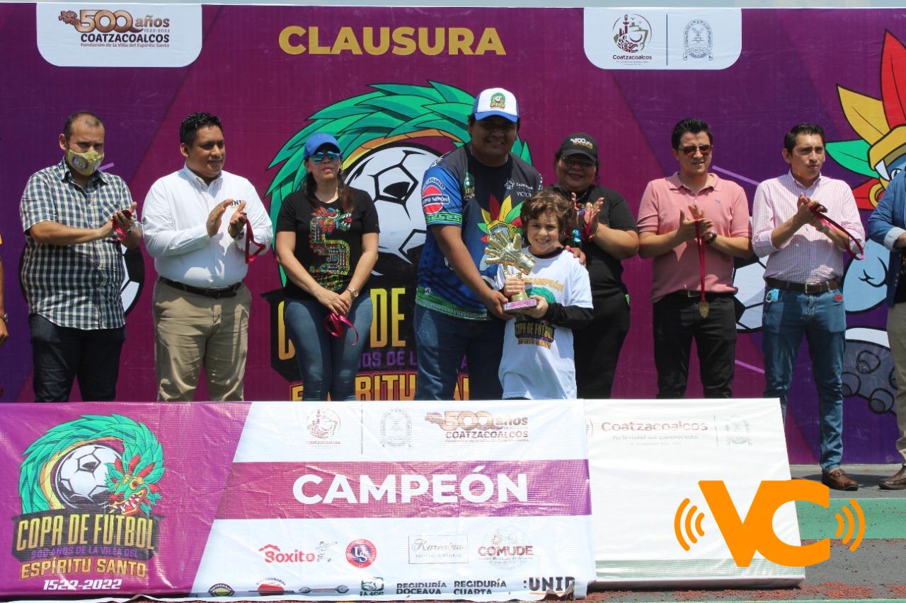 Coatzacoalcos, Ver., 13 de junio de 2022.- Con gran éxito concluyó la «Copa de Futbol 500 Años de la Villa del Espíritu Santo”, justa deportiva en la cual participaron alrededor de 78 equipos locales, regionales y del estado de Oaxaca.