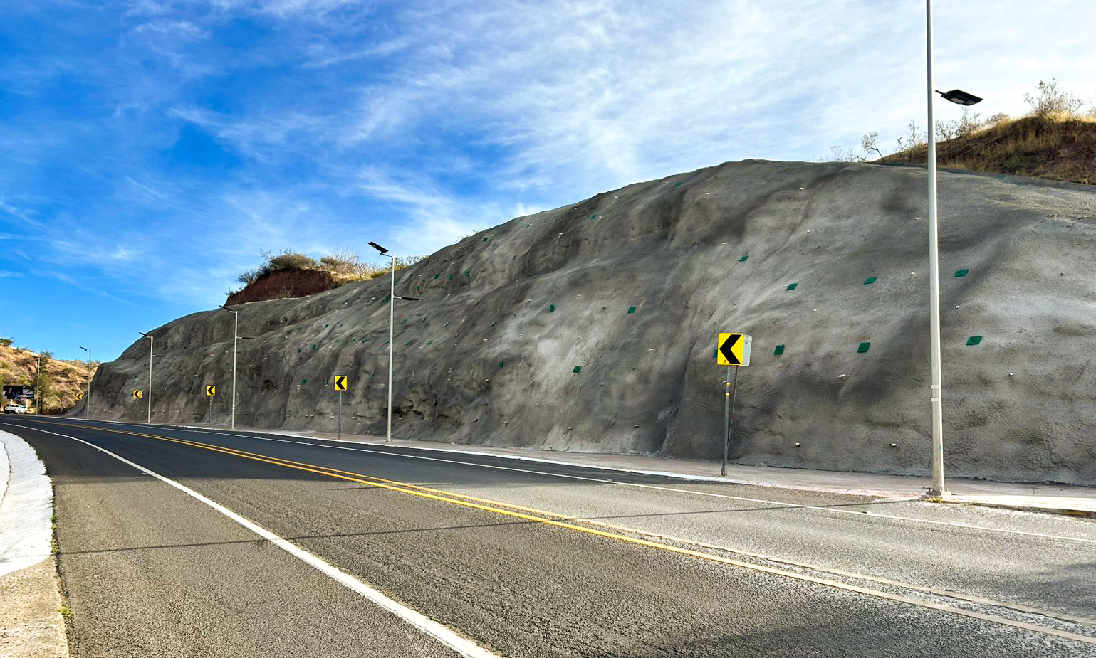 Los trabajos consistieron en labores de desmonte, deshierbe, retiro de material rocoso y remoción de material inestable. Posteriormente, se llevó a cabo la colocación de anclas metálicas de fricción-tensión, la aplicación de concreto lanzado y el recubrimiento de taludes con malla metálica para su protección, con el fin de prevenir derrumbes ocasionados por el desprendimiento de rocas.