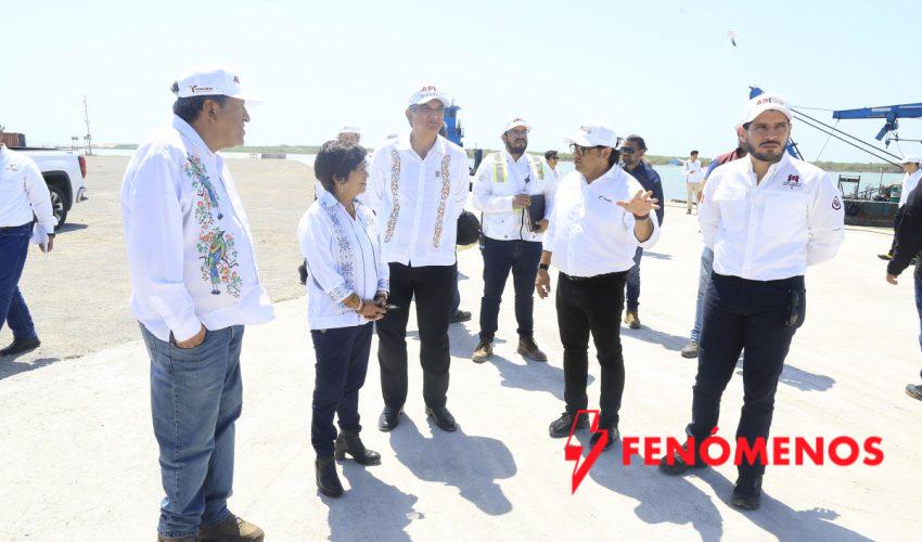 El gobernador y la titular de la Sedatu, junto con el director general de la Comisión Nacional de Vivienda, Rodrigo Chávez Contreras llegaron hasta la zona de las escolleras, donde apreciaron el canal de navegación y conocieron la zona para el desarrollo de la Terminal de Almacenamiento de Pemex, que se convertiría en la más grande e importante del noreste de México.