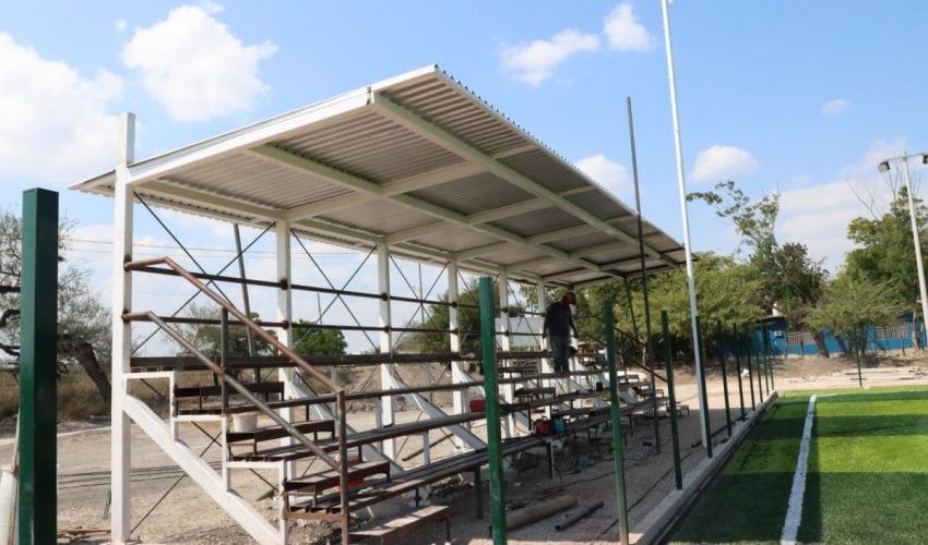 “Estamos trabajando en la instalación del pasto sintético, además de la colocación de luminarias para el campo y el espacio multideportivo, así como el armado de la estructura para las gradas”, refirió el titular de la dependencia estatal.