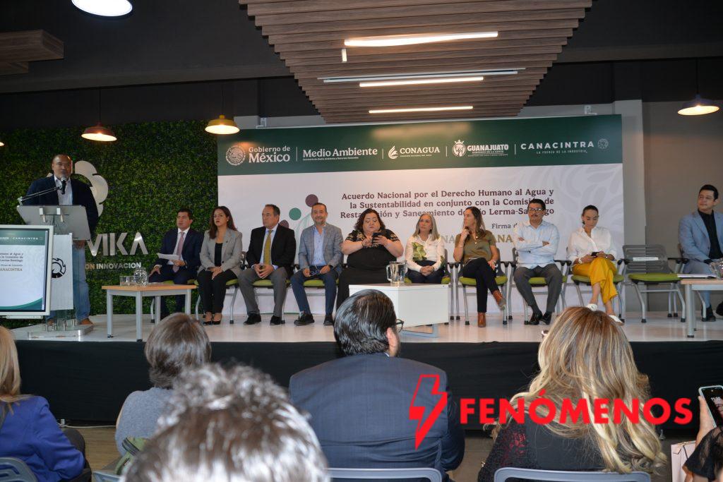 Participaron en el encuentro, María De Lourdes Medina Ortega Presidenta Nacional de Canacintra, Claudia Gómez Godoy, Comisionada del Saneamiento y restauración de la Cuenca del Río Lerma-Santiago, Paola Félix Díaz Coordinadora General del Acuerdo Nacional y de Cooperación Internacional de la CONAGUA, Mariana Boy Tamborrell, Procuradora Federal de Protección al Ambiente, Ángel Ernesto Ortega Mata, Director Local de la CONAGUA, Ingeniero Enrique de Haro Maldonado Director General del Sistema de Agua Potable y Alcantarillado de León Karina Padilla Ávila Titular Procuradora Ambiental y de Ordenamiento Territorial Guanajuato.