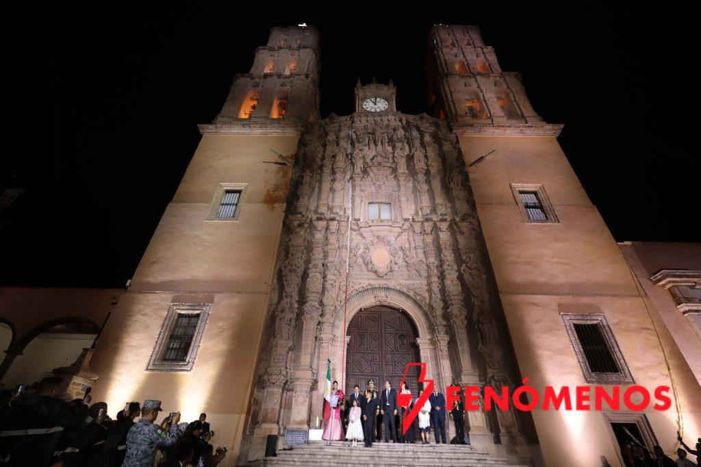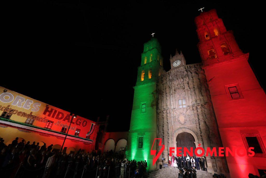 Libia Dennise, desde la puerta de la Parroquia de Dolores, rindió homenaje al inicio del movimiento Insurgente y evocó el llamado de Don Miguel Hidalgo y Costilla para levantarse en armas, aquella madrugada del 16 de septiembre de 1810.