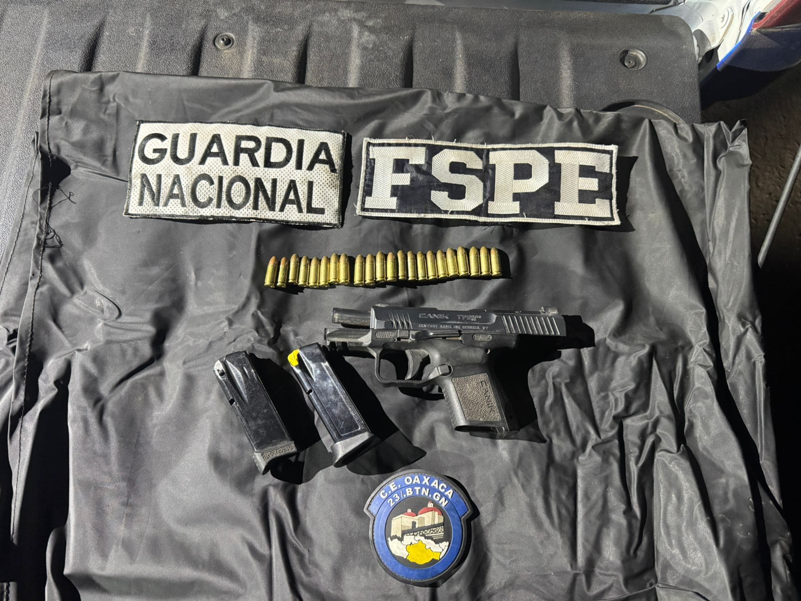 El detenido fue identificado como Eric Ricardo “N”, de 28 años, originario de Morelia, Michoacán. Se le aseguró un arma corta, dos cargadores y 22 cartuchos útiles.