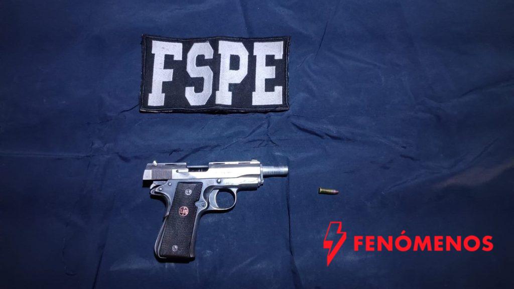 Al arribar al sitio, el personal operativo localizó a un hombre recostado junto a una motocicleta y un arma de fuego corta, tipo escuadra, calibre .22 mm, abastecida con un cartucho útil. Tras brindarle los primeros auxilios, fue asegurado por la portación del arma de fuego.