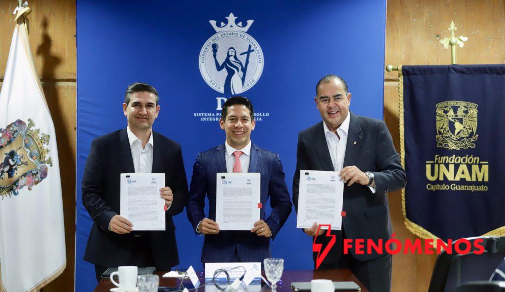 El convenio fue firmado por el presidente del Consejo Consultivo del Sistema DIF Estatal, Juan Carlos Montesinos Carranza, el Director General, José Alfonso Borja Pimentel y el presidente de la Fundación UNAM Capítulo Guanajuato, Javier Aguirre Vizzuett, en presencia de consejeros y representantes académicos.