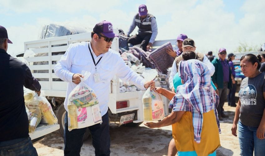 Matamoros, Tamaulipas.– Las y los Mensajeros de Paz del Sistema DIF Tamaulipas, que preside la doctora María de Villar real, regresaron al ejido Higuerillas para cumplir los compromisos asumidos y entregar más de dos mil apoyos a familias de la comunidad, así como de las islas aledañas.