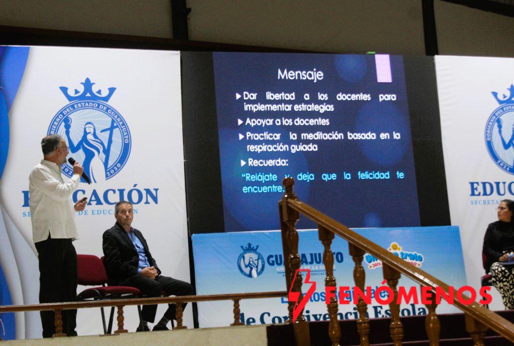 La jornada también incluyó dos conferencias impartidas por especialistas con el fin de dar a conocer los protocolos de Acoso Escolar, Maltrato Escolar y Violencia Sexual, así como para analizar la Ley para una Convivencia Libre de Violencia en el Entorno Escolar para el Estado de Guanajuato y sus Municipios, ofreciendo un marco legal para la prevención y atención de conflictos escolares. Asimismo, se abordó el Buen Trato para aprender a convivir en las escuelas, los factores protectores y factores de riesgo ante la violencia escolar.