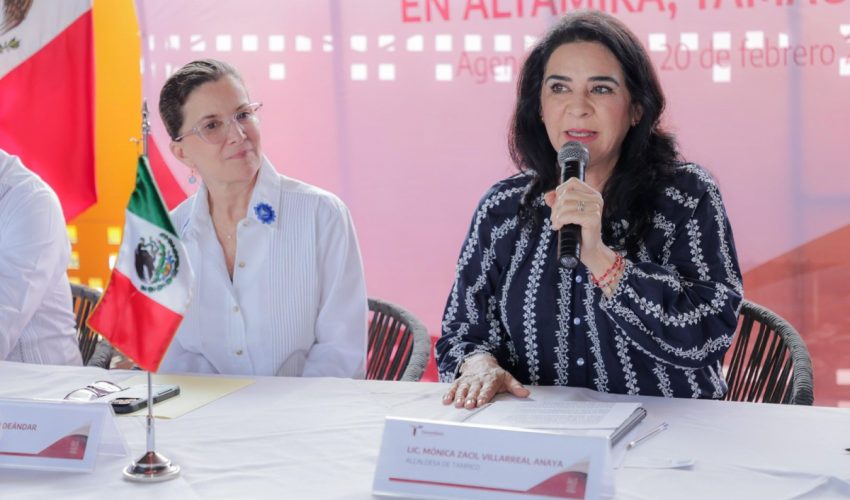 La secretaria de Economía, Ninfa Cantú Deándar, acompañada de la presidenta municipal de Tampico, Mónica Villarreal; de los alcaldes de Altamira, Armando Martínez;  y de Madero, Erasmo González; el secretario de Desarrollo Energético, Walter Julián Ángel; el jefe de Unidad de Comercio e Industria de CEPAL Nahuel Odonne; el presidente de AISTAC, Eliezer Garza y el presidente del CIEST, Marco Cortés sostuvieron en esta ciudad, un encuentro con los medios de comunicación para dar a conocer los alcances de esta estrategia conjunta.