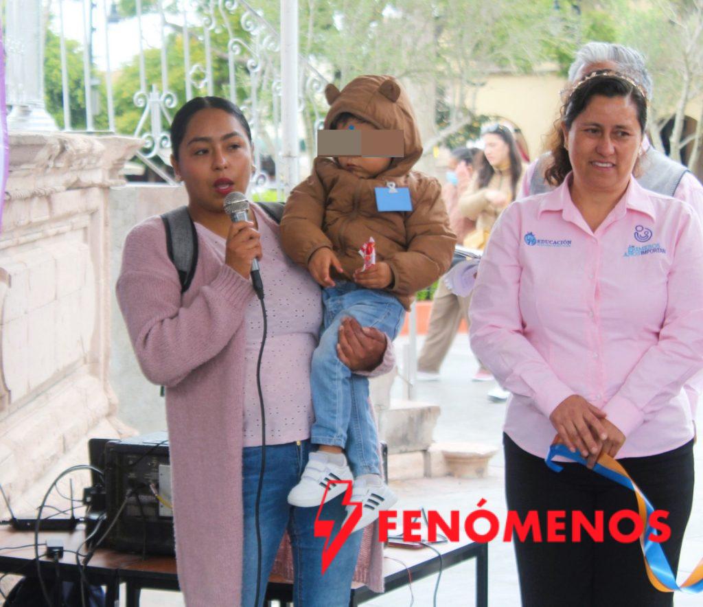 Asimismo, la señora Jessica Alejandra Juárez Cano, integrante del grupo de educación inicial en la colonia Loma de Buenavista, San José de Iturbide, con su hijo José Mateo en brazos, dio testimonio del impacto positivo en el desarrollo de su hijo. Al ingresar al grupo, observó un avance significativo en el lenguaje, socialización y comunicación, y de forma paralela, ella tiene la oportunidad de interactuar con otras mamás para compartir ideas y convivir.