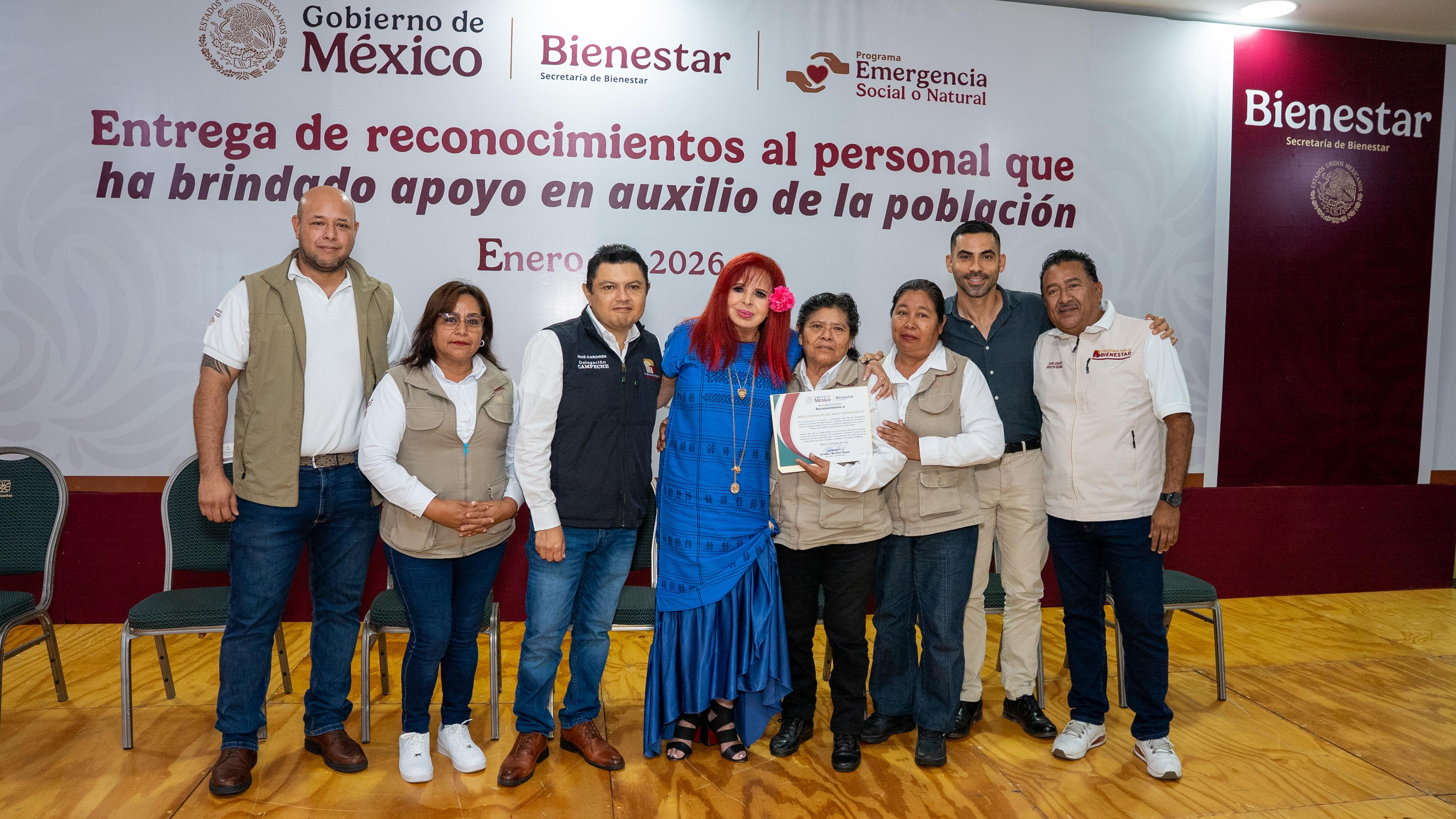 En el Centro de Convenciones y Exposiciones, la Gobernadora, Layda Sansores San Román, entregó reconocimientos a 160 hombres y mujeres Servidores de la Nación, quienes participaron activamente en las labores de atención, apoyo y reconstrucción en los estados de Guerrero y Veracruz, tras las afectaciones provocadas por fenómenos naturales hidrometeorológicos.