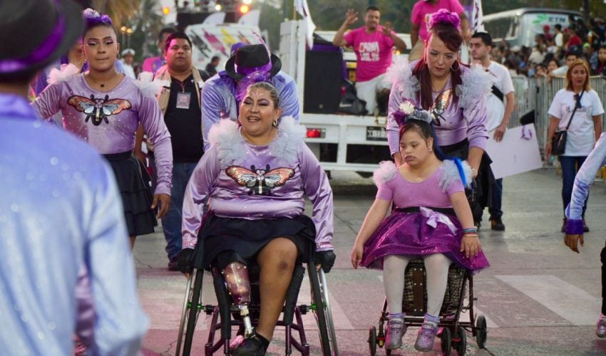 Batucada, colores, disfraces, vivas, gritos, coreografías, energía pura, lo mismo de niñas, niños y adultos que gente con distintas capacidades, una inclusión total.