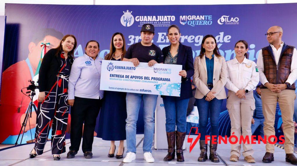 Este día se realizó la tercera entrega de apoyos del Plan de Retorno Asistido “Migrante Quiero”, mediante la cual se otorgan 210 apoyos a personas migrantes guanajuatenses, 72 son apoyos económicos directos y 138 a proyectos productivos, por un monto total de más de 4.5 millones de pesos para acompañar su regreso y fortalecer su reintegración social, familiar y económica en el estado.