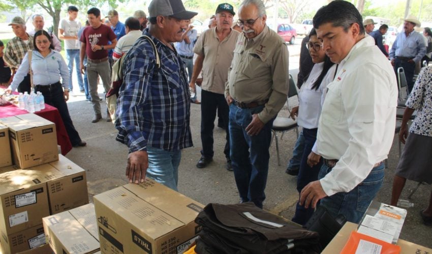 En apoyo directo a productores forestales, integrantes del ejido Rafael Villarreal, en Soto la Marina, y del ejido El Nogalito, en Casas, recibieron un total de 20 motosierras, fortaleciendo así sus actividades de aprovechamiento forestal.