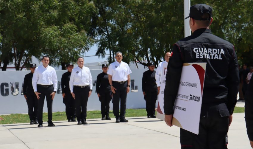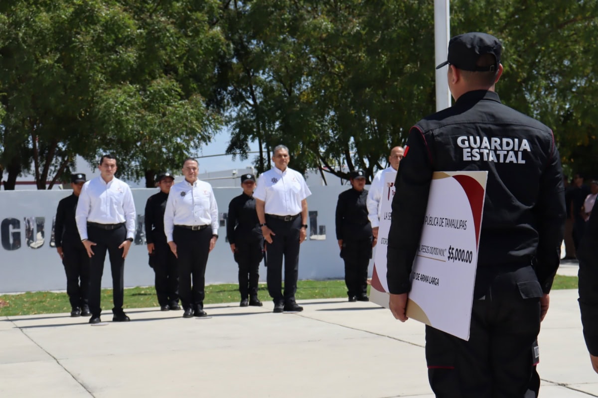 Ciudad Victoria, Tamaulipas.- Siguiendo la instrucción girada por el gobernador Américo Villarreal Anaya de reconocer mensualmente al personal operativo encargado de realizar el aseguramiento de armamento, la Secretaría de Seguridad Pública de Tamaulipas (SSPT) entregó los incentivos económicos correspondientes al mes de febrero a elementos de la Guardia Estatal que participaron en estas acciones.