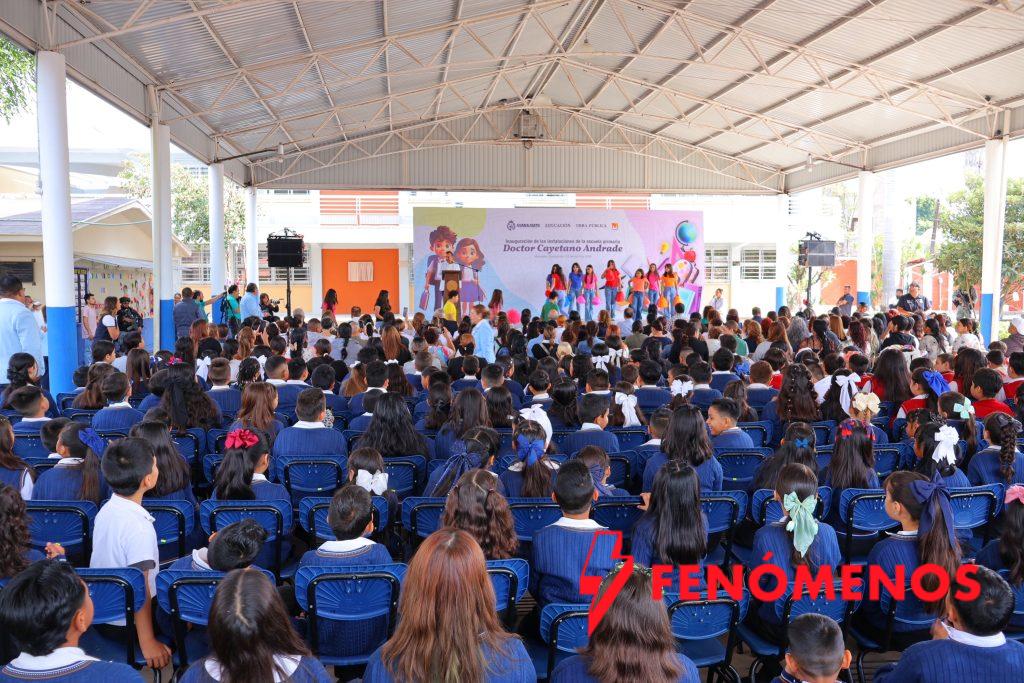 Moroleón, Gto., 15 de abril de 2026.– Más de 500 alumnas y alumnos de la primaria “Dr. Cayetano Andrade” iniciaron una nueva etapa con instalaciones renovadas, resultado de una inversión superior a los 12 millones de pesos que transforma uno de los planteles con mayor historia en el municipio.