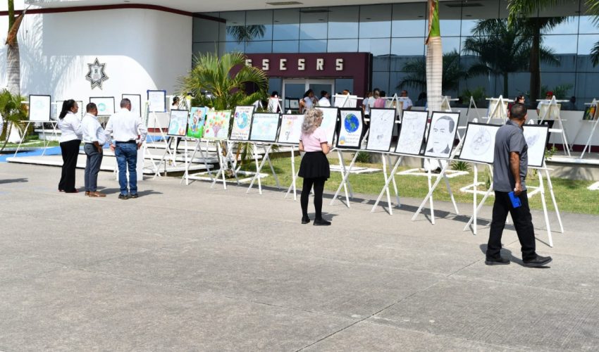 La exposición de los trabajos se realiza en la explanada frente al edificio del Centro de Ejecución de Sanciones (CEDES) del Complejo de Seguridad Pública en Ciudad Victoria, donde se exhiben los carteles elaborados con distintas técnicas como lápiz, acuarela y pintura sobre lienzo.